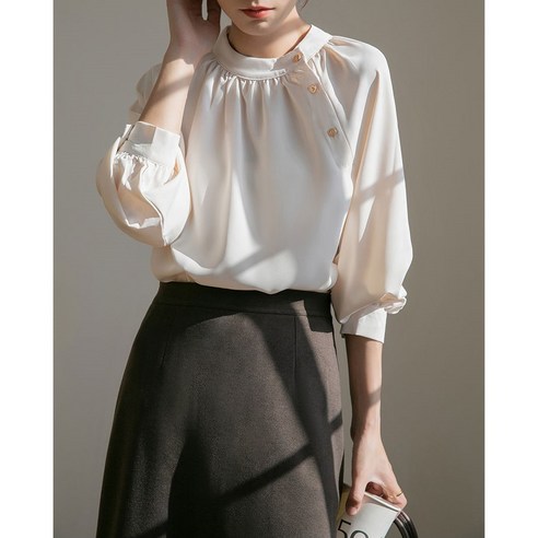 버튼 쉬폰 셔츠 새 스타일 프렌치 레트로 스탠드 업 칼라 풀오버 디자인 탑